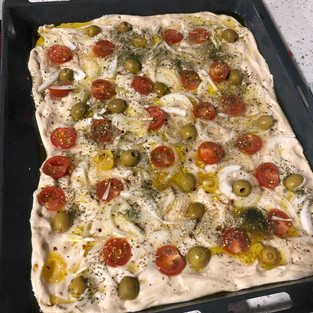 Focaccia cebolla, aceitunas y tomate Thermomix