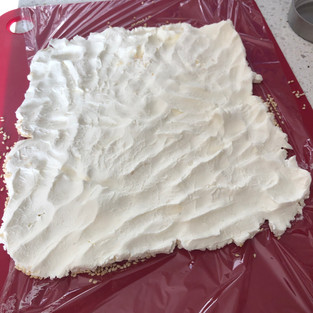 En un film plástico esparcir sésamo tostado. Disponer sobre este los dos philadelphia y aplastar con las manos hasta dejar de aproximadamente 1 centímetro.