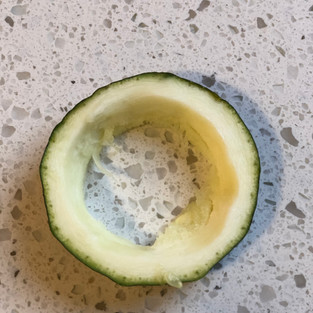 Lavar y cortar los zapallos italianos en rodajas grandes.