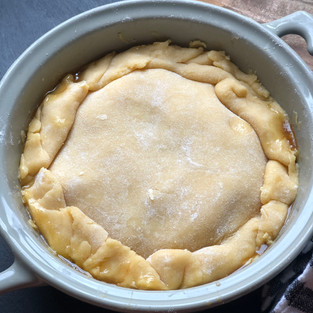 Poner la masa sobre las manzanas y hornear 20 minutos más o hasta que la masa se vea un poco dorada y cocida.